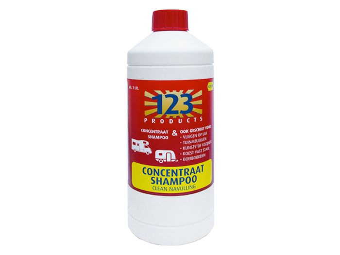123 Products Clean Shampoo to koncentrat w opakowaniu uzupełniającym, przeznaczony do napełniania gotowej do użycia butelki roboczej o pojemności 650 ml. Koncentrat bywa również stosowany jako szampon do codziennego mycia — jest to możliwe, jednak przy takim rozcieńczeniu nie usuwa on czarnych smug, a jedynie powierzchowne, pierwsze zabrudzenia.