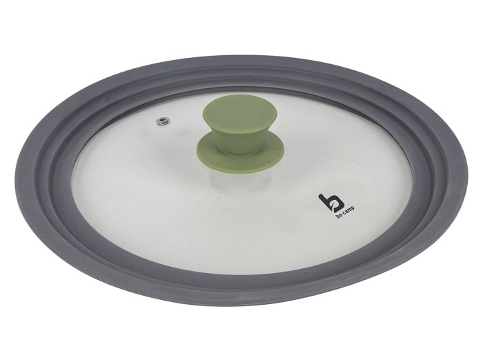 Uniwersalna pokrywka Bo-Camp jest wykonana ze szkła i wyposażona w silikonową krawędź oraz uchwyt. Pokrywka pasuje do patelni o średnicy 24, 26 lub 28 cm.