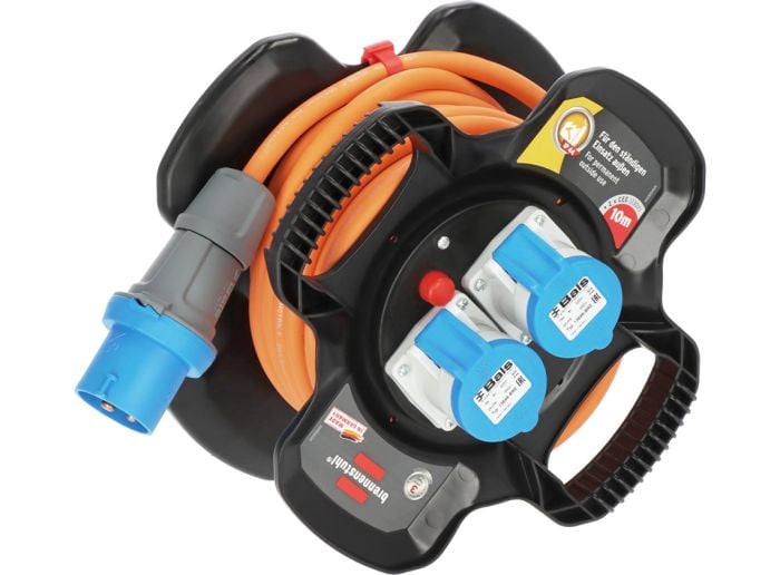 Przedłużacz CEE firmy Brennenstuhl jest wyposażony w 3 gniazda 230 V, a także 2 wyjścia CEE. Przedłużacz na bębnie posiada zintegrowany uchwyt i zabezpieczenie przed przegrzaniem. Zabezpieczenie przed przegrzaniem zapobiega przegrzaniu i przeciążeniu.
