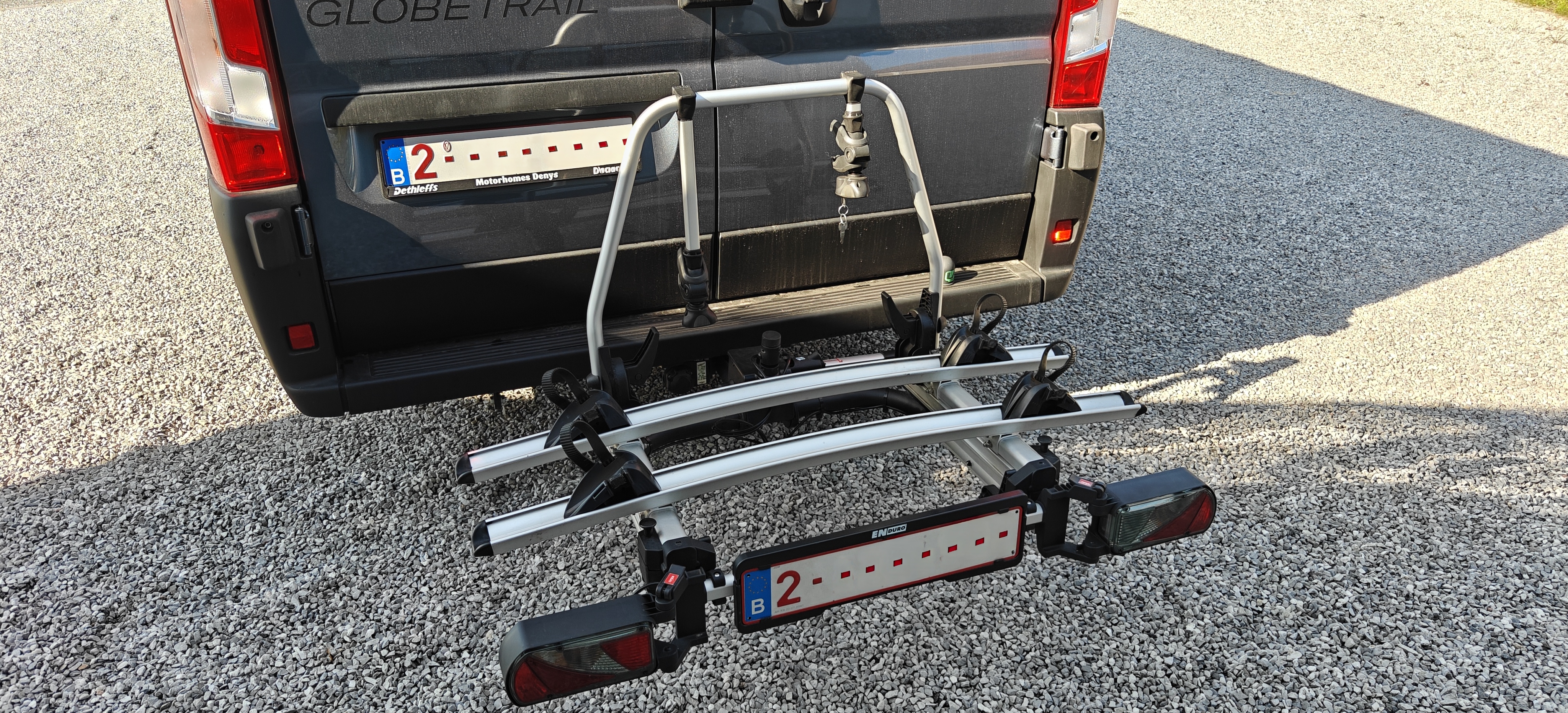 Ten bagażnik na rowery ma unikalny system przesuwania, który gwarantuje, że zawsze można dostać się do schowka w swoim samochodzie lub busie. Dzięki przesuwaniu tworzy się więcej miejsca między bagażnikiem a tyłem samochodu czy kampera, dzięki czemu można również otwierać drzwi kampera. I to z rowerami na bagażniku! Drzwi mogą mieć maksymalną szerokość 85 cm. System przesuwny działa bardzo prosto. Jest to kwestia odblokowania bolców zabezpieczających i można wysunąć bagażnik do przodu.