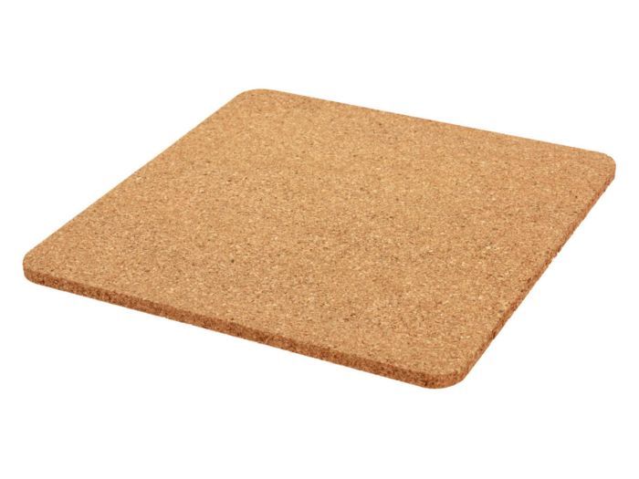 Podstawki pod garnki pakowane są po 3 sztuki i mają wymiary 19 x 19 cm. Podkładki wykonane są z korka.