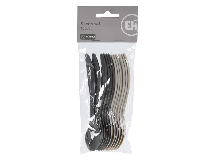 Zestaw łyżeczek Excellent Houseware składa się z 12 łyżeczek, 6 ciemnoszarych i 6 jasnoszarych.
