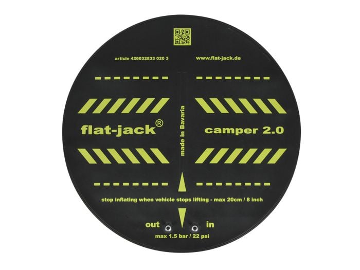 Poduszka poziomująca Flat-jack to dmuchana poduszka umieszczana pod oponą przyczepy lub kampera. To model Camper Plus, przeznaczony do opon o szerokości 275 mm. Łatwy w użyciu i wygodny w transporcie.