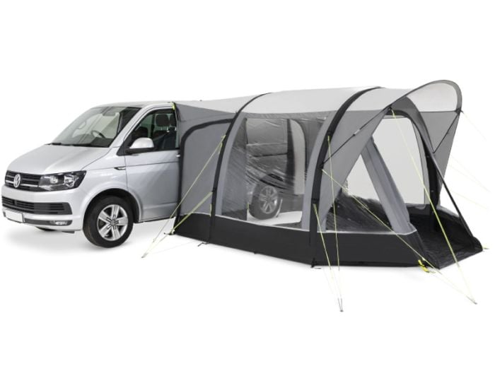 Kampa Action Air to przedsionek do busa w bardzo współczesnym i nowoczesnym wydaniu, który dzięki nadmuchiwanym tubom powietrznym można bardzo szybko rozstawić.