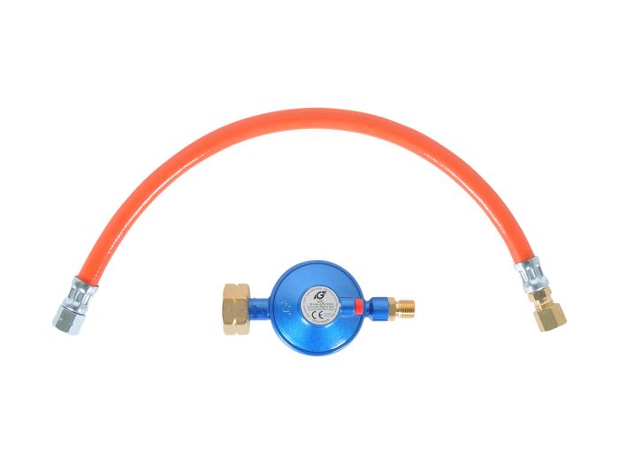 Ten kompletny zestaw zawiera regulator ciśnienia gazu o ciśnieniu 30 milibarów. Regulator ciśnienia ma złącze DIN, które jest kompatybilne z większością popularnych zielonych turystycznych butli gazowych. Dzięki temu zestaw jest odpowiedni do większości przyczep kempingowych i kamperów z instalacją gazową 30 milibarów.