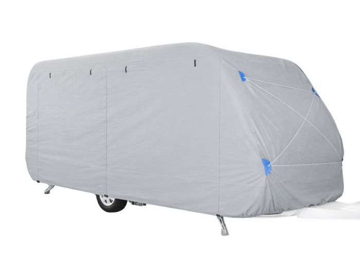 Pokrowiec na przyczepę ma szerokość 235 cm i jest dostępny w kilku długościach. Ten pokrowiec na przyczepę kempingową jest wodoodporny i nadaje się zarówno do użytku wewnątrz, jak i na zewnątrz. Pokrowiec posiada również 3 zamki błyskawiczne z jednej strony, co umożliwia wejście do przyczepy podczas jej przechowywania. Pokrowiec na przyczepę kempingową ma elastyczny ściągacz na dole, co zapewnia dobre dopasowanie.