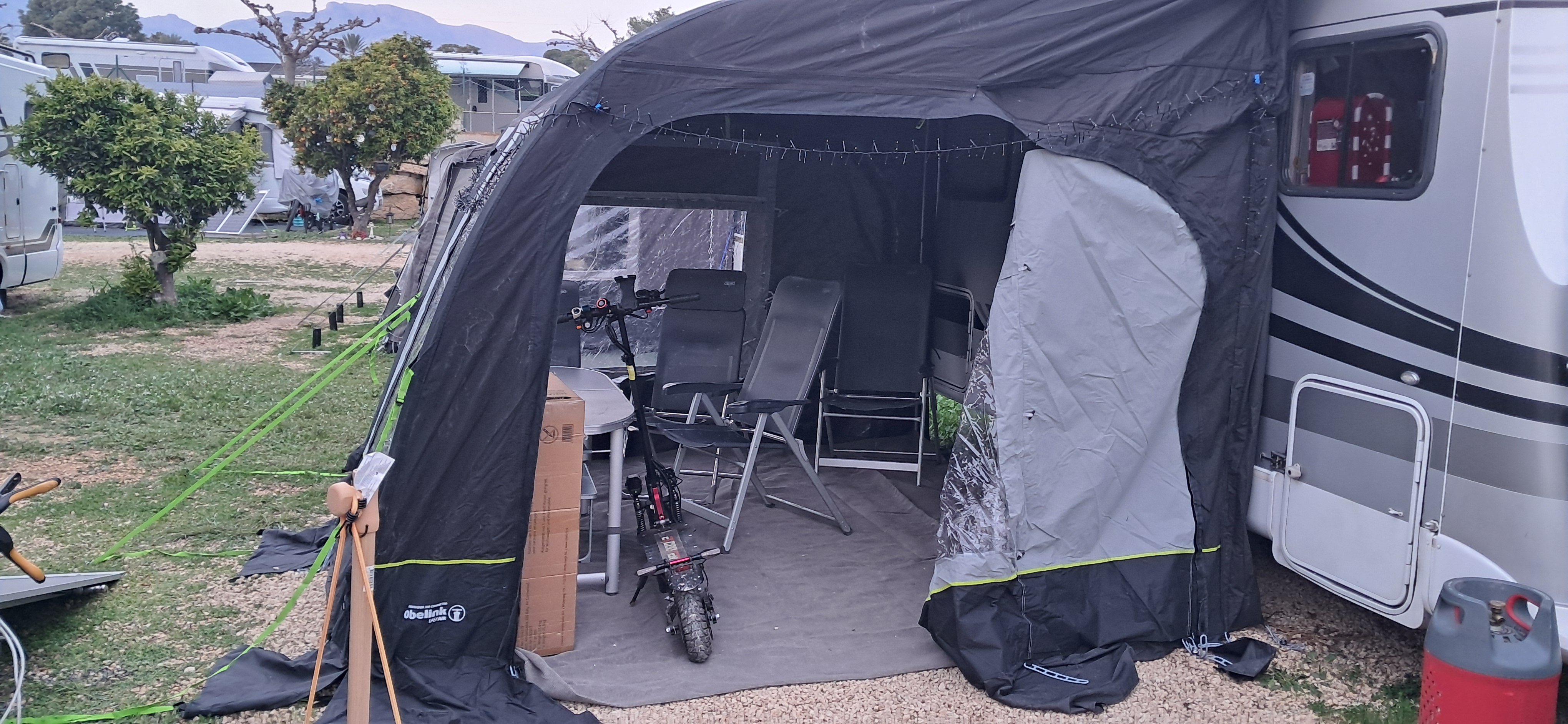 Przedsionek Obelink Ambasador jest wykonany z wytrzymałej, powlekanej polibawełny. Dzięki temu Ambassador nadaje się nie tylko na krótkie weekendowe wycieczki, ale także na dłuższe wakacje na kempingu, trwające od 2 do 3 tygodni.
