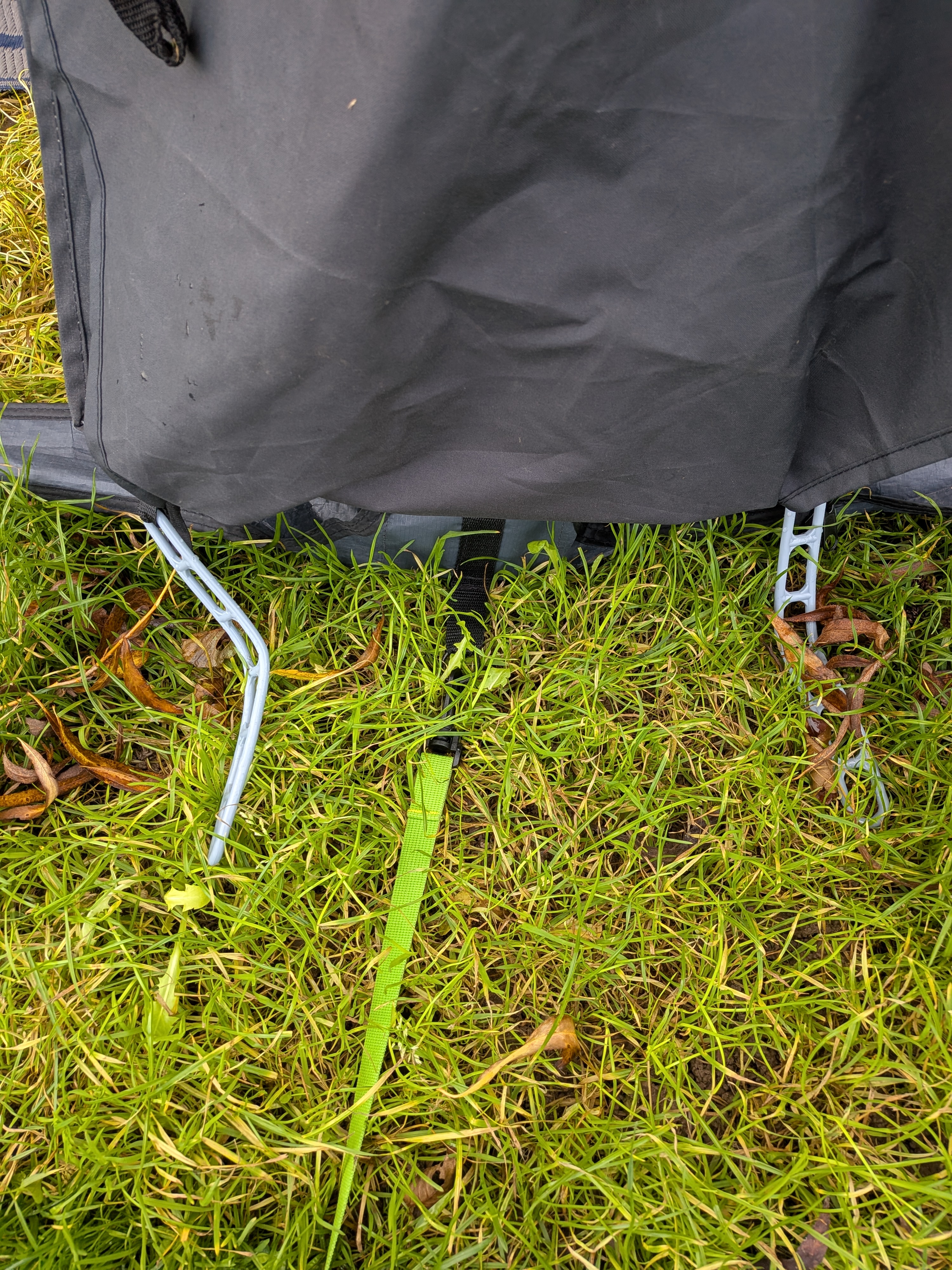 Jeśli namiot lub przedsionek posiada podwójny fartuch, jeden można wyłożyć do środka, a drugi na zewnątrz, aby zapewnić dodatkową ochronę.