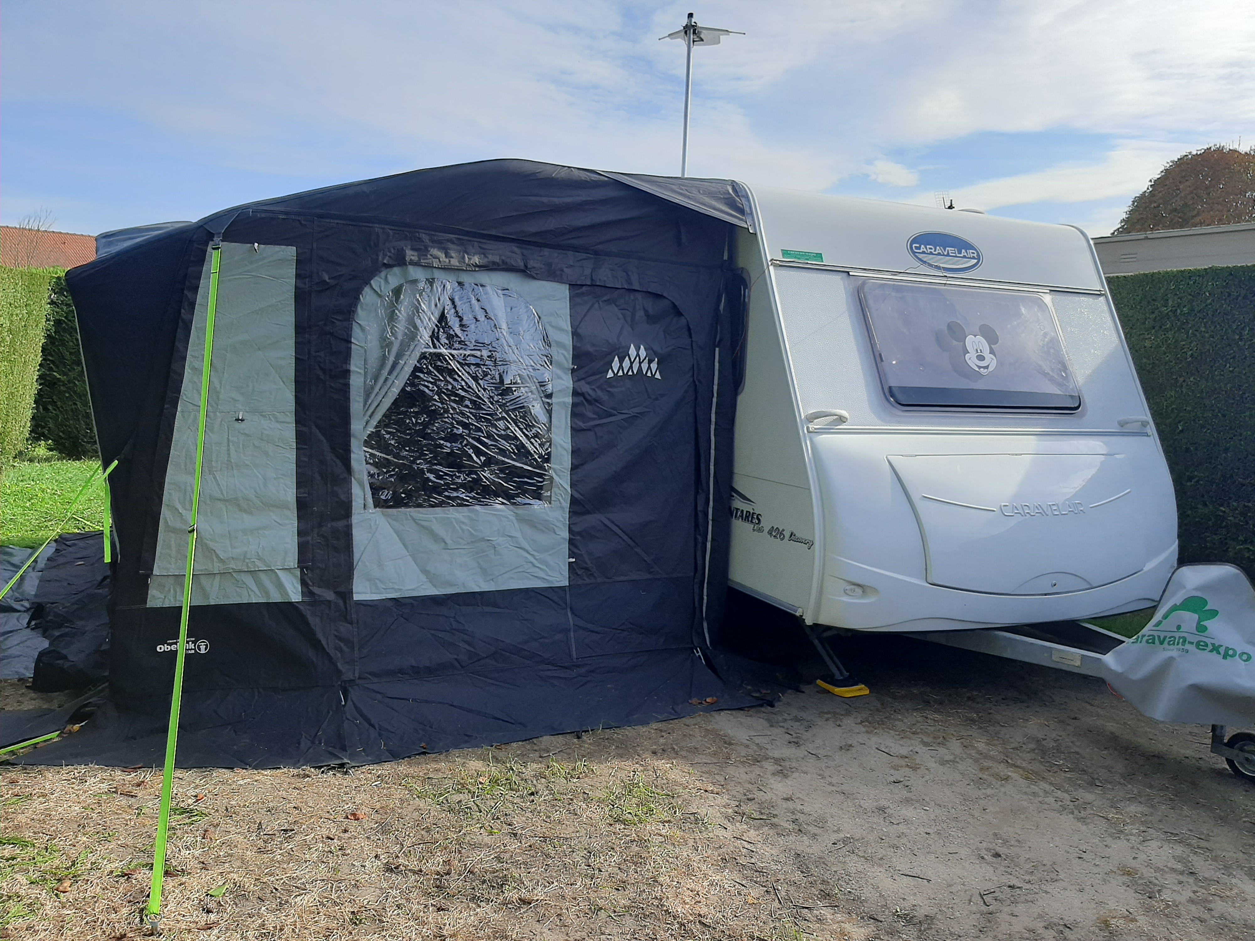 W Obelink Atrium 390 Easy Air Connected obie ściany boczne i wszystkie panele drzwi w ścianie przedniej można całkowicie rozpiąć. Gdy jest ładna pogoda, można łatwo przekształcić przedsionek w zadaszenie, rozpinając wszystkie panele. W zależności od tego, jak zaparkowana będzie przyczepa kempingowa lub kamper, dzięki wielu opcjom można wybrać, które drzwi przedsionka będą głównym wejściem.