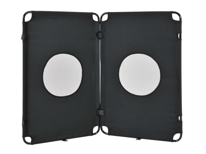 Dzięki temu zestawowi można powiększyć wybieg dla psa Balou poprzez dodanie dodatkowych paneli bocznych. Panele boczne mają wymiary 62 x 93 cm. Panele wykonane są z poliestru, natomiast rama ze stali.