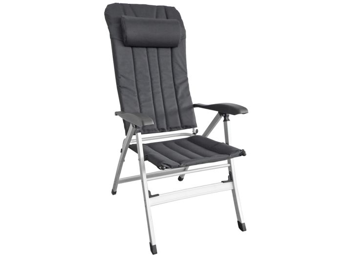 Obelink Corsica to luksusowe krzesło kempingowe o wysokim komforcie siedzenia. Aluminiowa, owalna rama w kształcie litery H zapewnia dodatkową stabilność i wytrzymałość. Siedzisko i oparcie są wyściełane i zapewniają maksymalny komfort. Oparcie jest regulowane w 8 pozycjach i ma zintegrowany zagłówek.