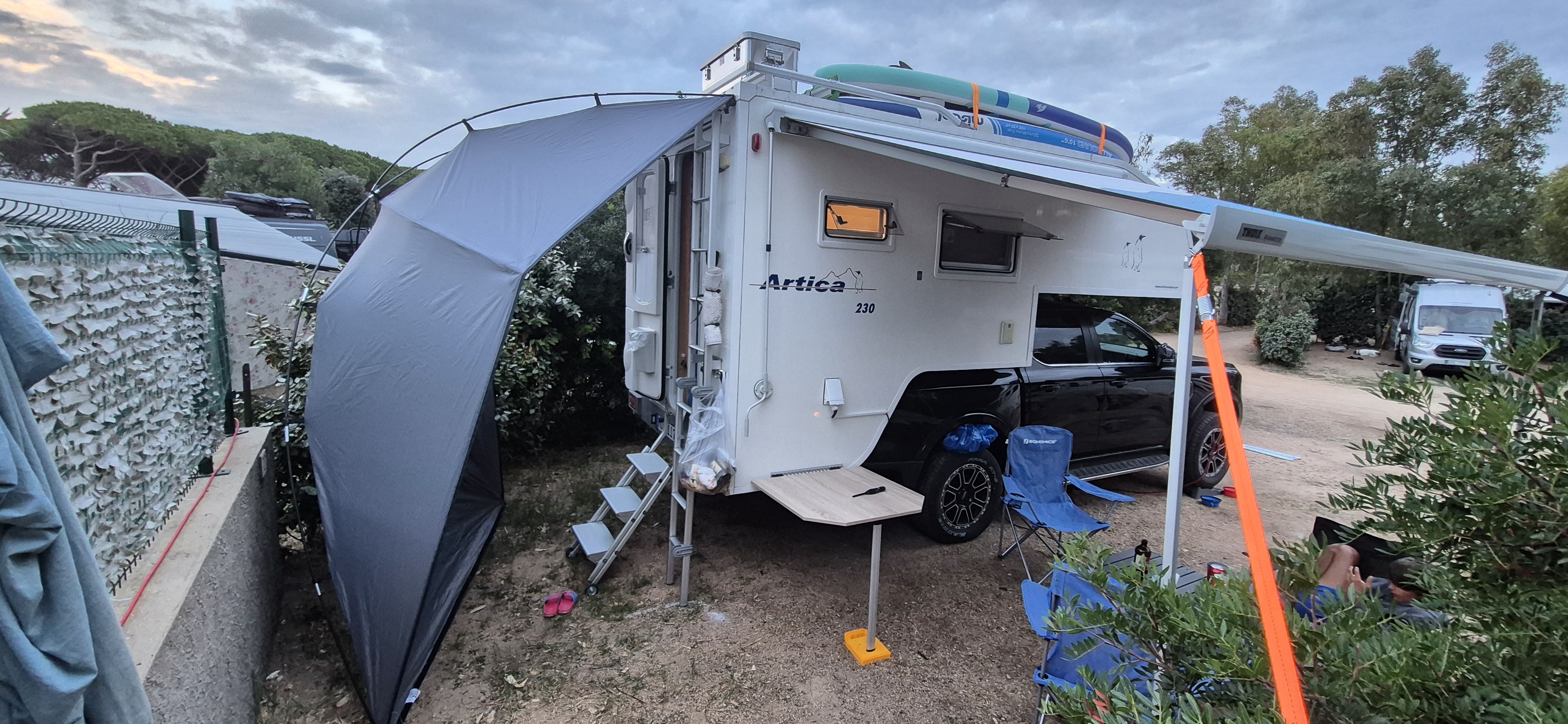 Zadaszenie Donau multi można wykorzystać na kilka sposobów, na przykład jako zadaszenie w samochodzie, kamperze lub przyczepie kempingowej. Donau można również umieścić z tyłu kampera lub przyczepy kempingowej, aby powstało schronienie z tyłu pojazdu. Jednym słowem, możliwości są nieograniczone.