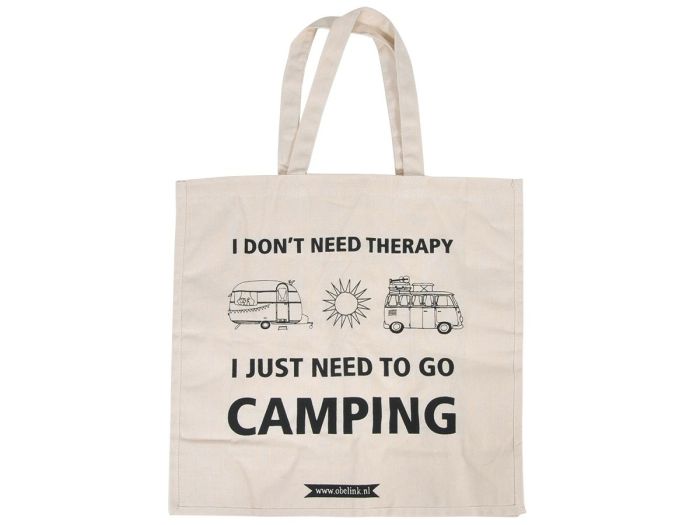 Torba Obelink I don't need therapy z bawełny to pojemna torba z zabawnym cytatem związanym z kempingiem.