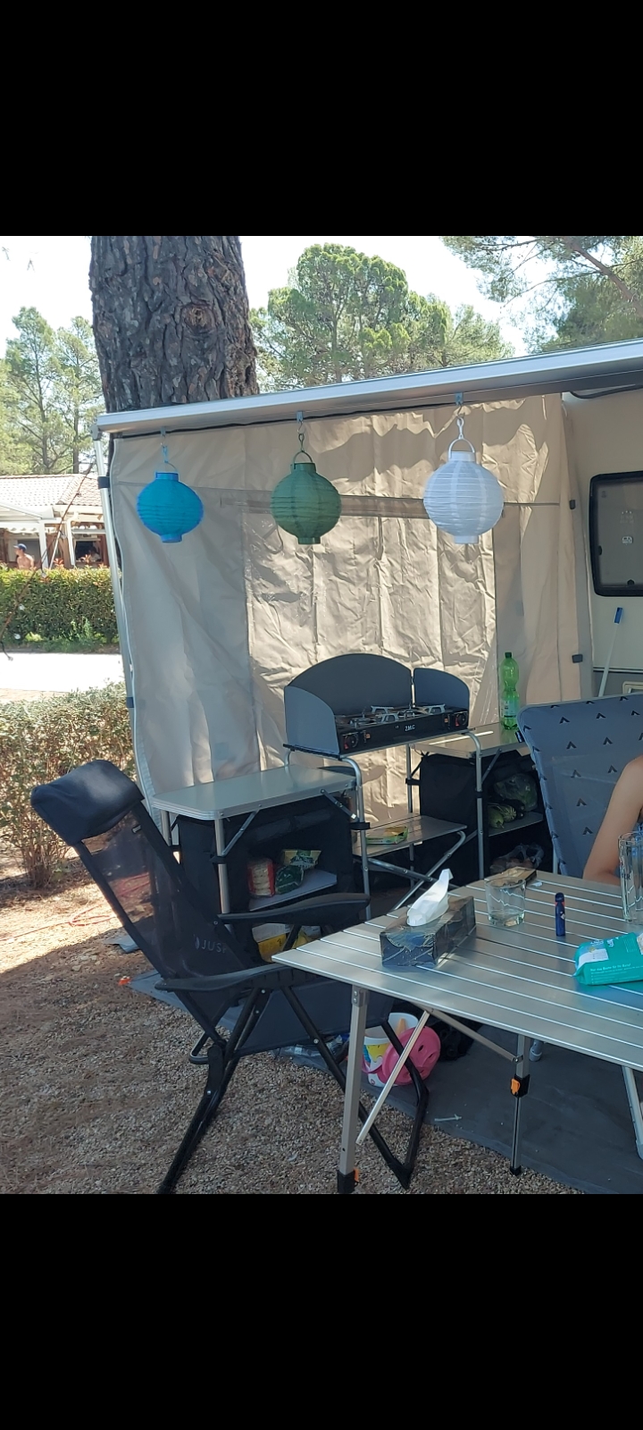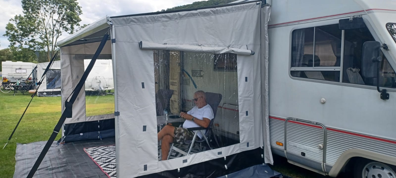 W części tylnej znajduje się piankowa poduszka, którą przy pomocy opcjonalnego prętu dociskającego, można docisnąć do ściany kampera lub przyczepy kempingowej. W ten sposób ściana boczna dokładnie przylega do pojazdu.