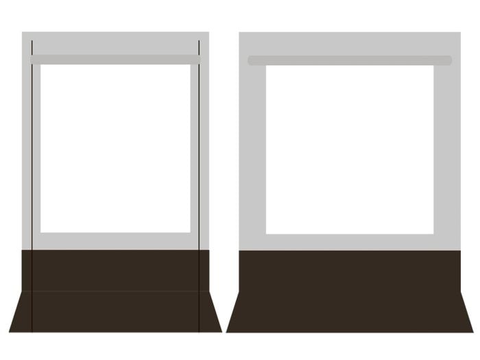 Ponieważ cała przednia ściana składa się z dwóch oddzielnych paneli, można samemu wybrać, który panel zostanie umieszczony w którym miejscu. W ten sposób umieszczamy panel z drzwiami po lewej lub prawej stronie.