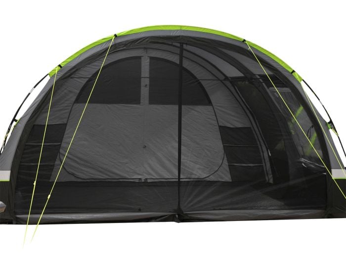 Ścianka z siatki posiada zamek błyskawiczny i można ją zamontować na obu zamkach w namiocie. W ten sposób można umieścić ścianę z przodu lub w połowie namiotu. Ponieważ namiot wyposażony jest w dwa zamki błyskawiczne, można jednocześnie używać ściany siatkowej, jak i stałej przedniej ściany namiotu.