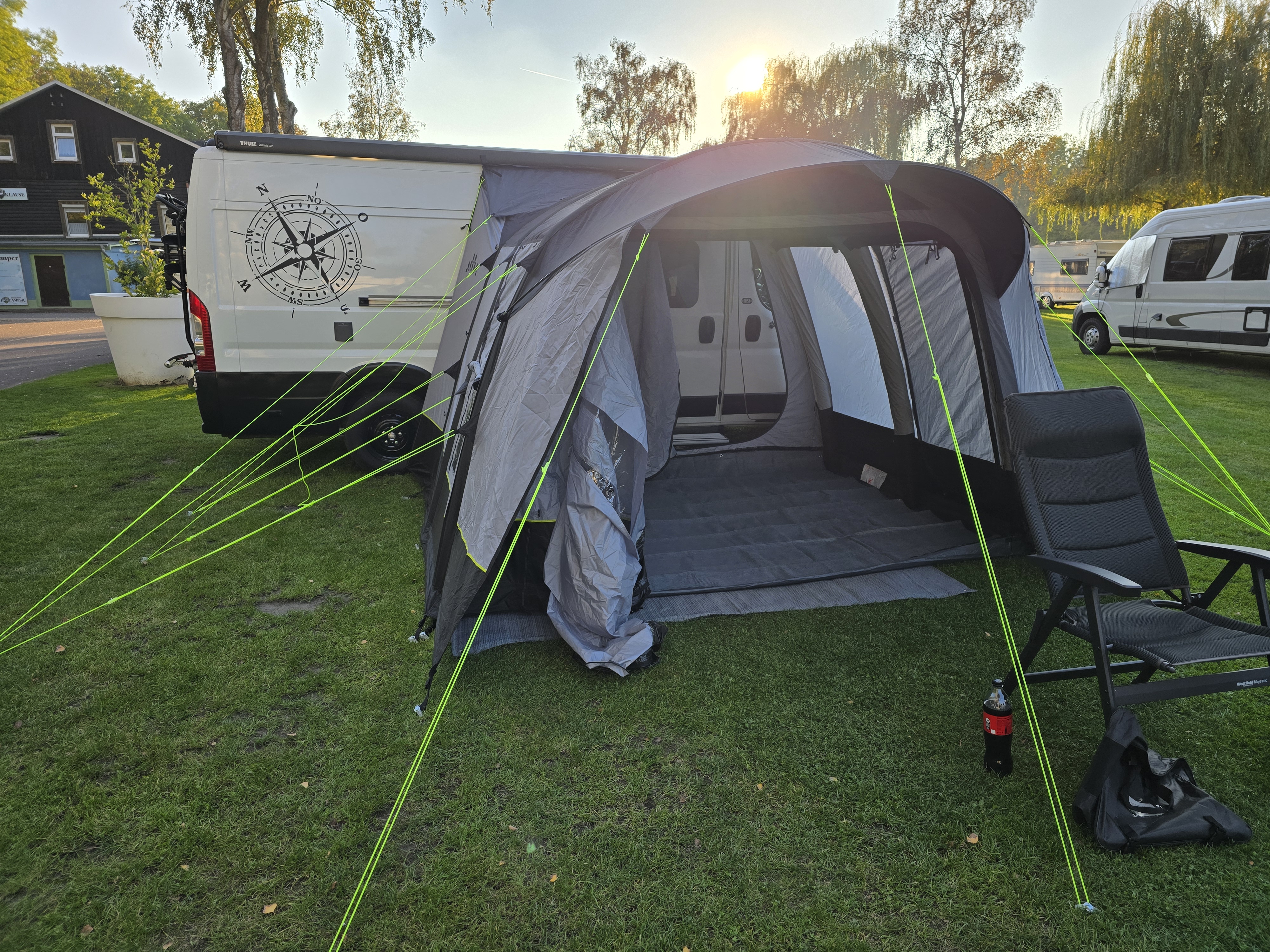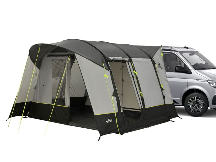 Wolnostojący namiot lub przedsionek może również stać bez busa lub kampera. Jest to szczególnie przydatne, gdy trzeba odjechać pojazdem, a nie chcemy zwijać namiotu.