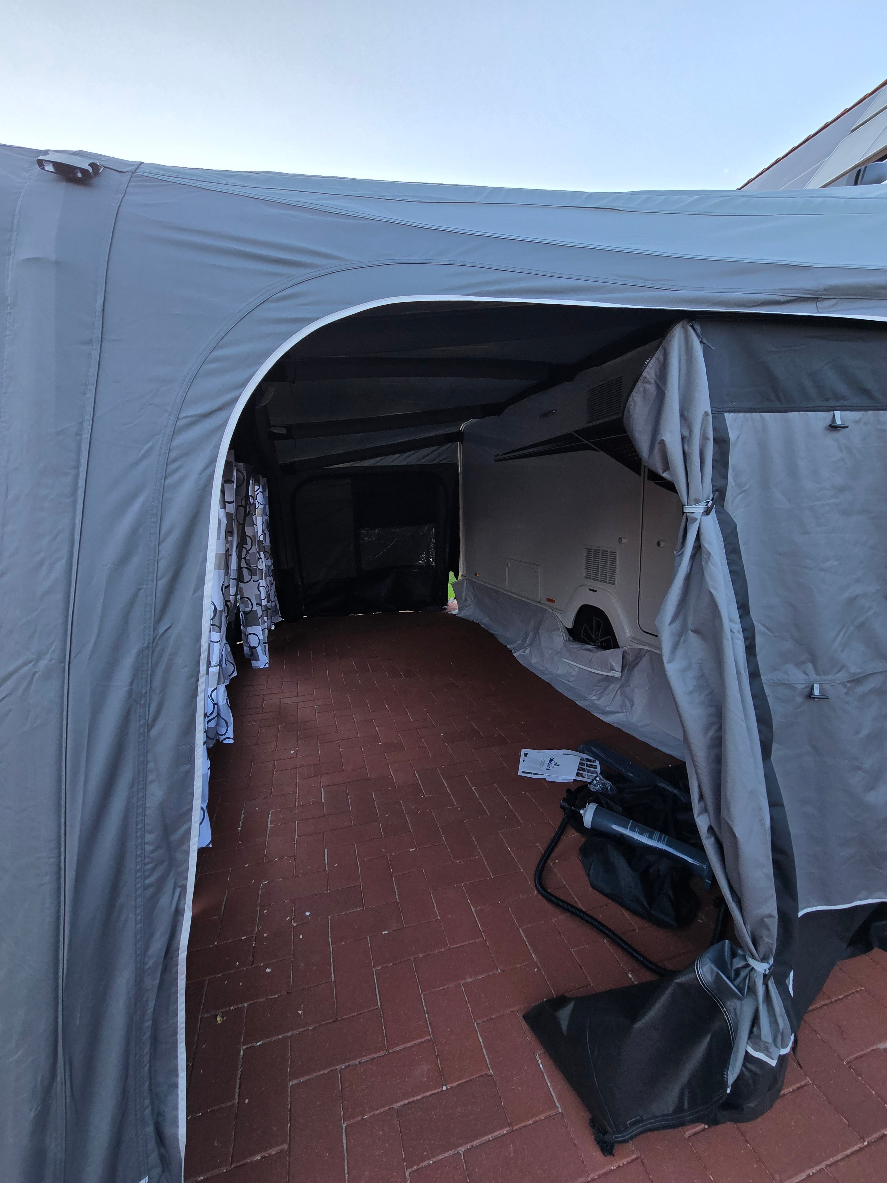Obelink Neptune 240 Easy Air w rozmiarze 15 to przedsionek do przyczepy kempingowej ze stelażem w postaci tub powietrznych o obwodzie od 1001 do 1025 cm.