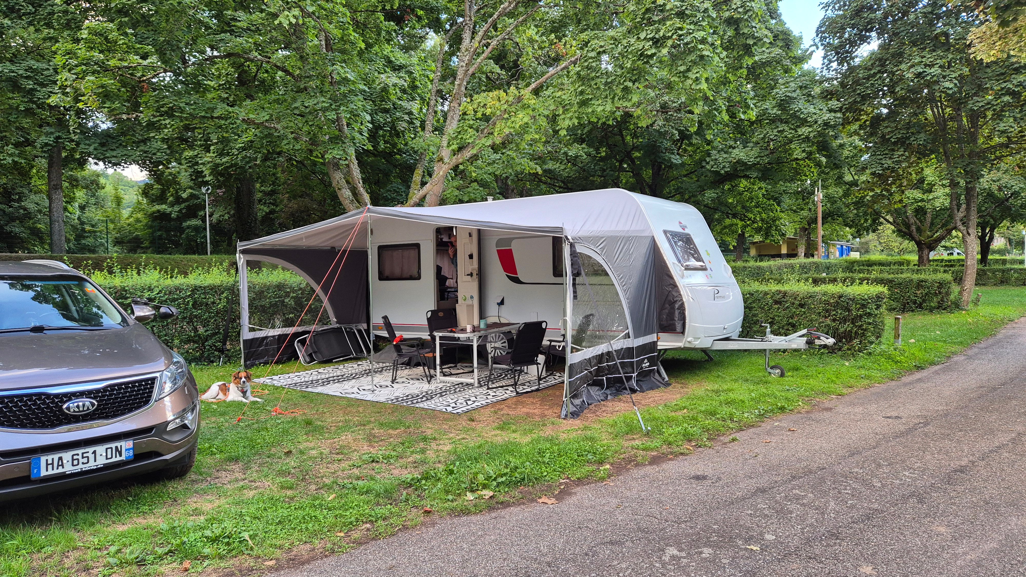 Wystający daszek można spotkać w przypadku większości tradycyjnych przedsionków do przyczep kempingowych.