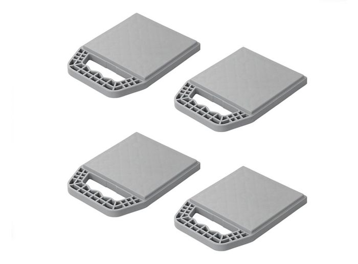 Płyty podkładowe Obelink z uchwytem BIG (4 sztuki) – 29 cm są przeznaczone do stabilizacji podpór w przyczepach kempingowych lub przyczepkach namiotowych. Płytki można układać jedna na drugiej, dzięki czemu podpory nie zapadają się, co poprawia stabilność sprzętu kempingowego.