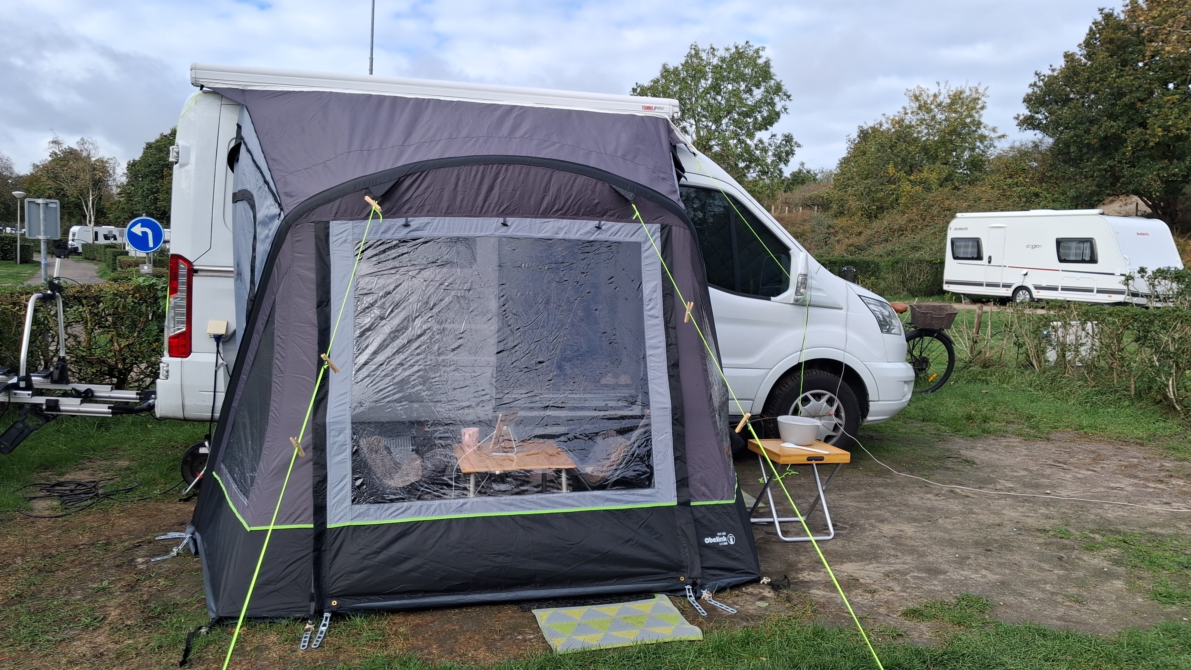 Obelink Rio 280 Easy Air to kompaktowy przedsionek z pompowanym stelażem, który pasuje zarówno do przyczepy kempingowej, jak i kampera.