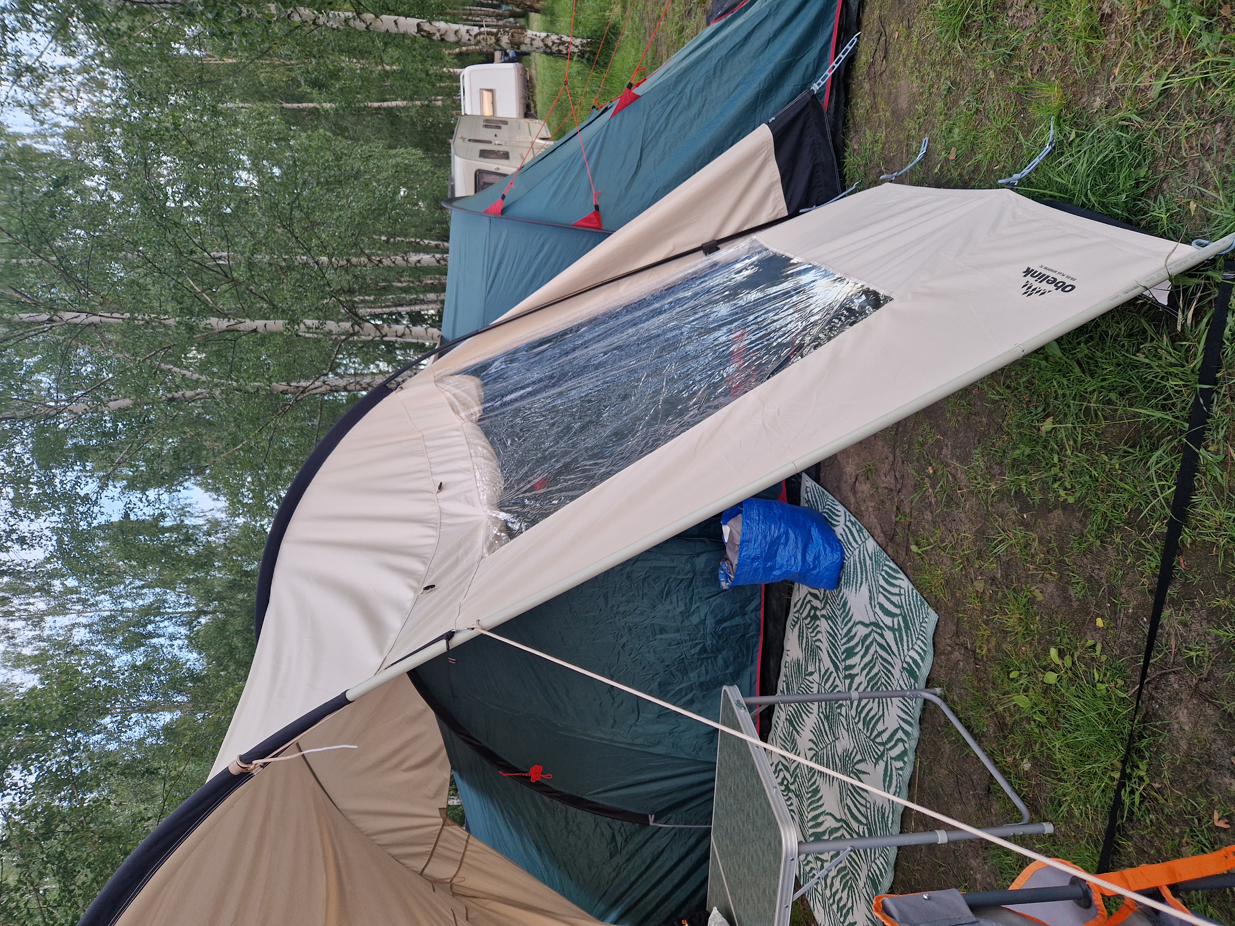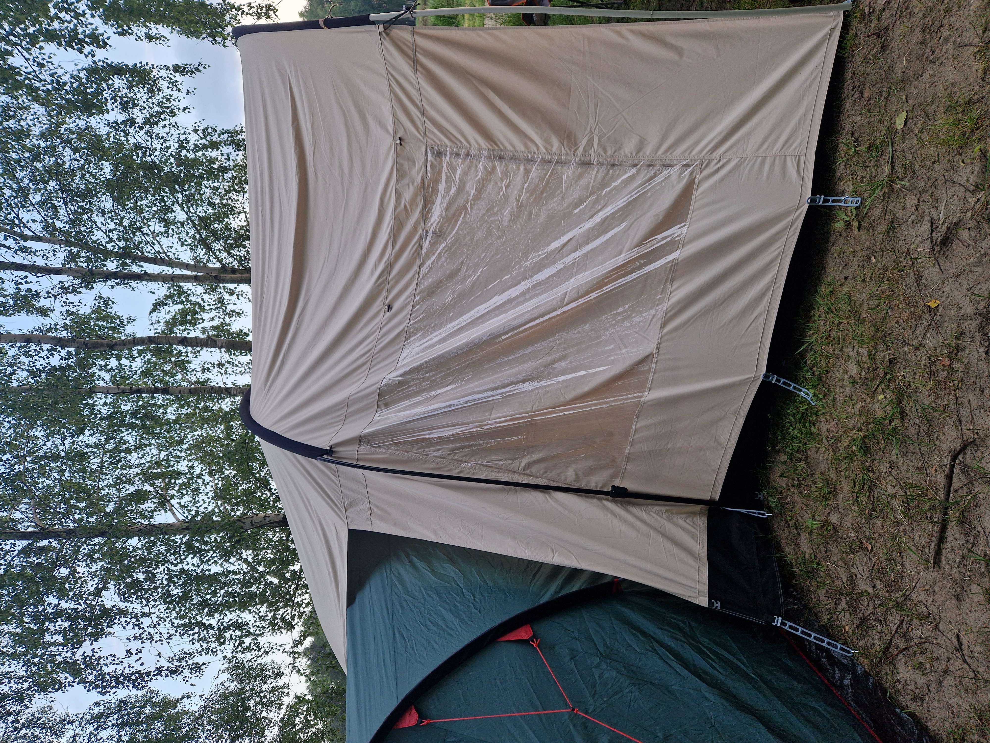 Obelink Soleil Plus Window TC to zadaszenie do namiotu z podwijanymi ścianami bocznymi, które nadaje się do większości namiotów 4- do 6-osobowych.