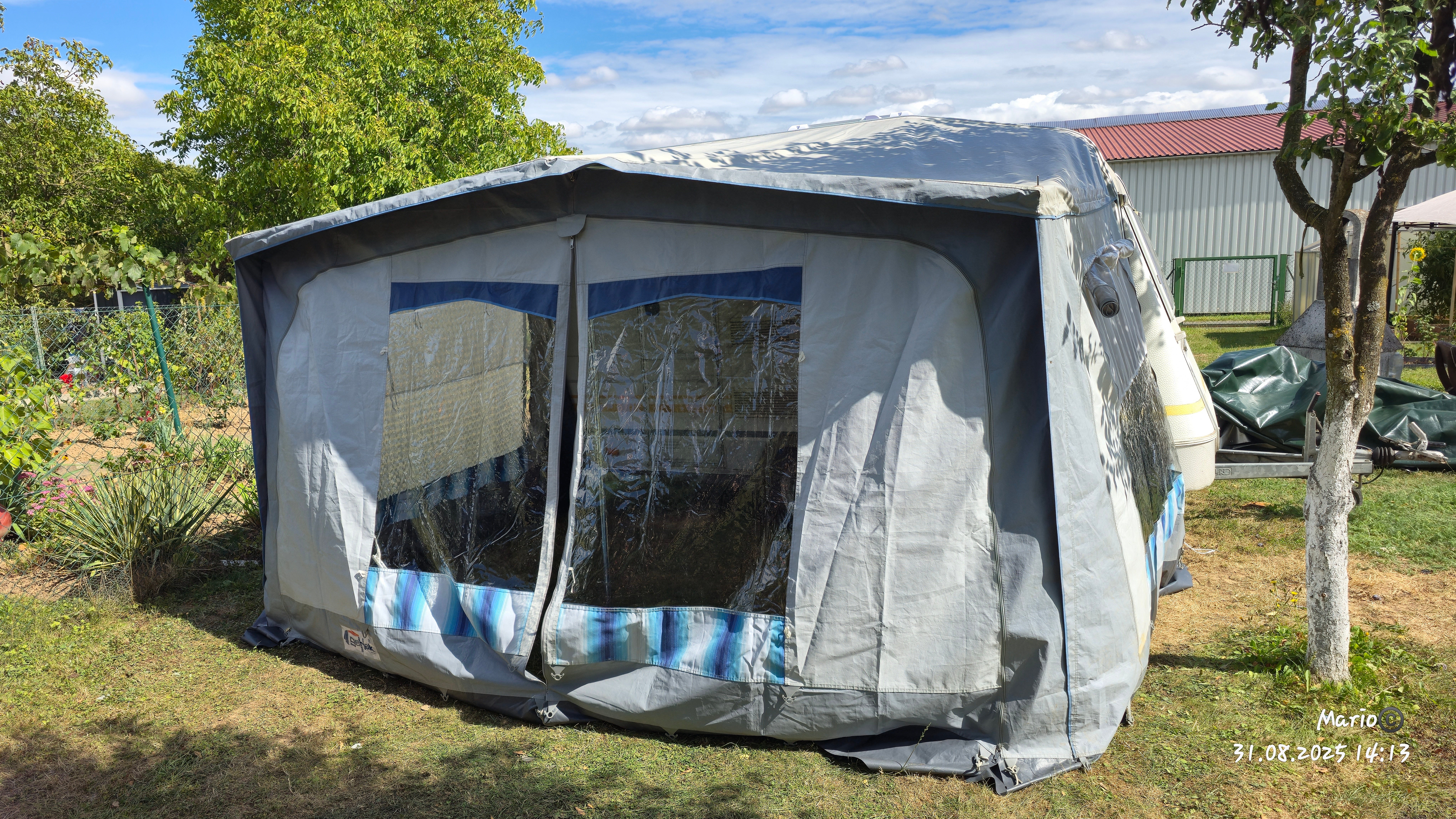 Stelaż przedsionka przeznaczony jest do przedsionków o głębokości od 240 do 300 cm. Wysokość, szerokość i głębokość stelaża można płynnie regulować dzięki wstępnie zamontowanym śrubom regulującym. Rurki pionowe posiadają składane stopki na zawiasach, które można przymocować do podłoża za pomocą śledzi. Stelaż jest dostępny w trzech różnych wersjach, w zależności od obwodu przyczepy kempingowej. Rozmiar 11-20 jest standardowo wyposażony w 5 rurek dachowych.