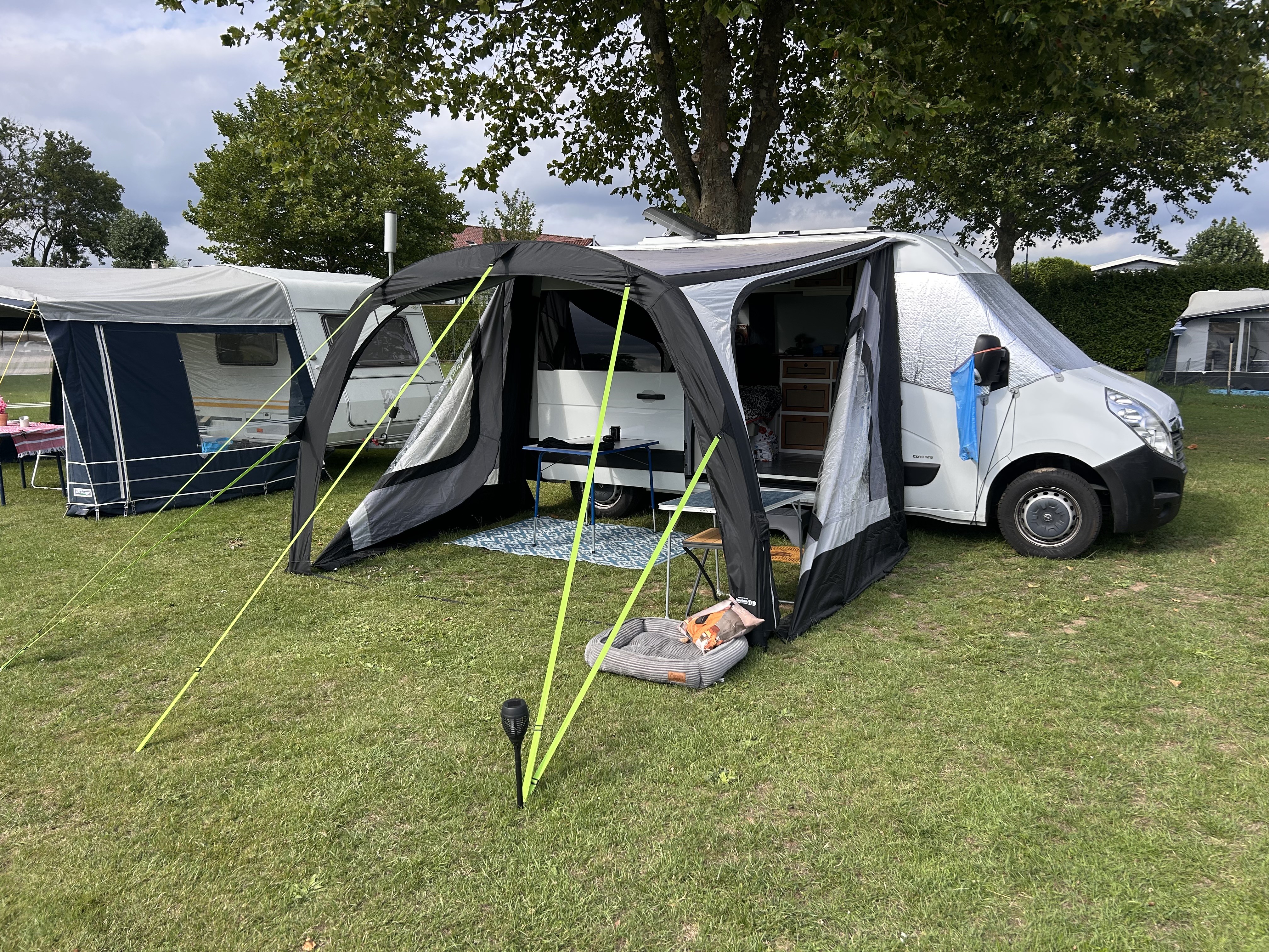 Obelink Sunroof 330 Easy Air CoolDark to rewolucyjne zadaszenie do przyczepy kempingowej. To szybko rozkładane zadaszenie jest jedyne w swoim rodzaju, gdyż jest w pełni nadmuchiwane oraz wyposażone w dach wykonany z materiału CoolDark.