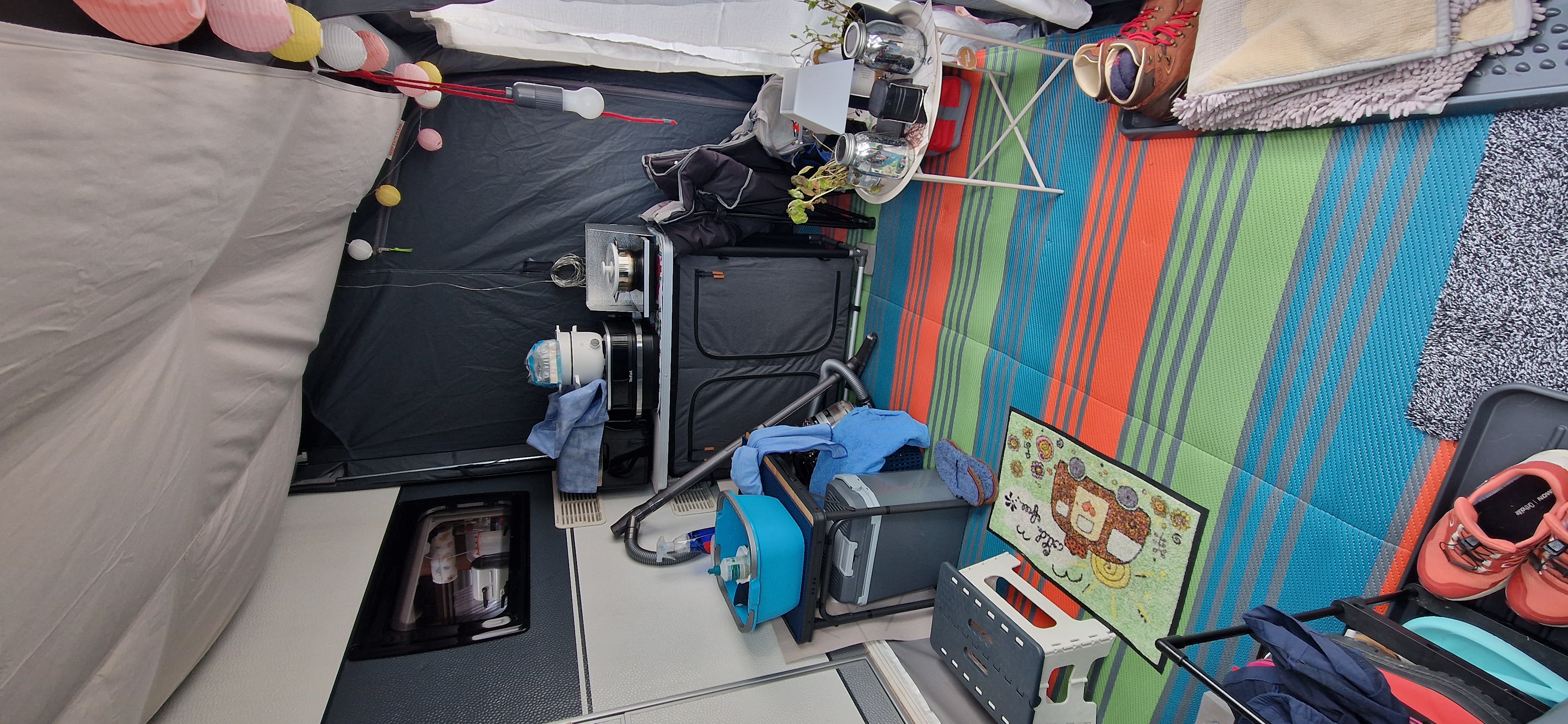 - Erster Eindruck gutEin wenig "hakelig" beim ersten Aufbau aber er macht einen recht guten Eindruck. Vor allem scheint der Stoff stabil zu sein. Die Wandstärke der Rohre scheint mir etwas zu dünn, aber die Zeit wird es zeigen ob sie ausreicht. Schade, dass die Platte nur aufgelegt ist und keine feste Verbindung zu dem Gestell hat sodass sich das Umstellen oder Verrücken des Schrankes etwas umständlich gestaltet