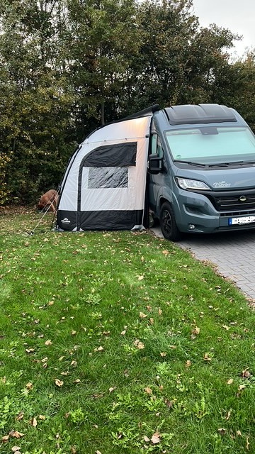 Zdejmowana ściana przednia posiada duże okno, które można całkowicie zasłonić od wewnątrz klapą maskującą. Obie ściany boczne są zwijane i posiadają duże okna. Dolne połowy okien są wyposażone w folię okienną i mogą być osłonięte od wewnątrz klapą maskującą. Górne części okien posiadają siatkę wentylacyjną, którą można zakryć od zewnątrz. Aby zapewnić dobre połączenie z przyczepą, ściany boczne przedsionka mają piankowe zakończenia, które chronią przed przeciągami i wiatrem. U dołu przedsionka znajdują się fartuchy dolne, które można założyć pod załączoną podłogę tak, aby w jak największym stopniu chronić namiot przed deszczem i insektami.