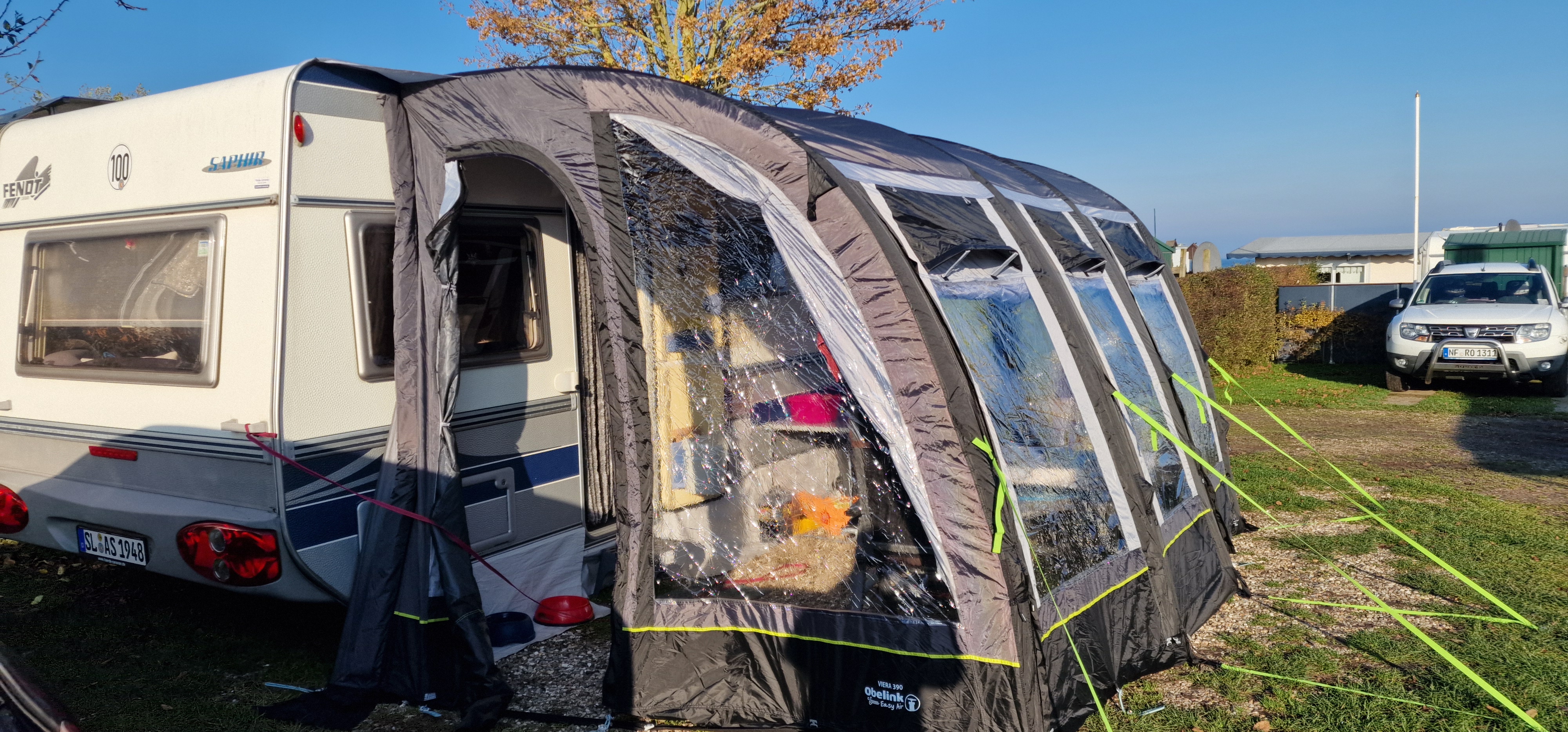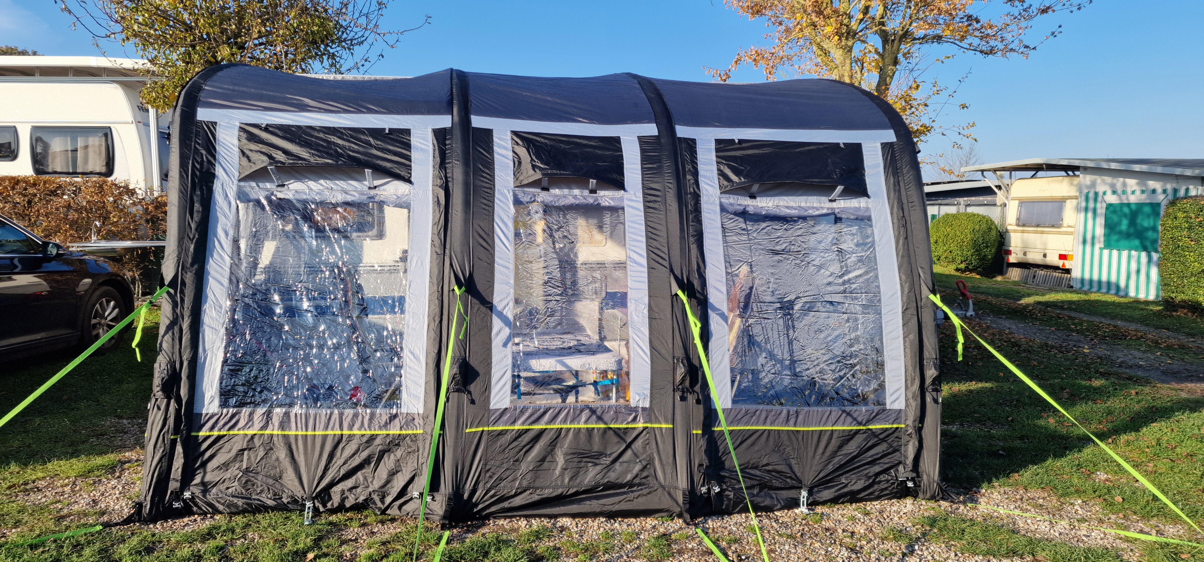 Obelink Viera 390 Easy Air to przedsionek do przyczepy kempingowej z pompowanym stelażem, który posiada wiele opcji, jeśli chodzi o wentylację, okna i drzwi. Przedsionek ten możemy zaoferować w atrakcyjnej cenie.