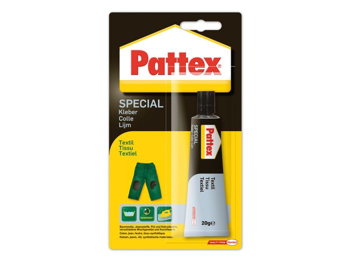 Klej do tkanin sztucznych Pattex Special o zawartości 20 gramów, jest przeznaczony do trwałego klejenia. Klej ten może kleić różne rodzaje materiałów, takie jak bawełna, dżins, filc i materiały syntetyczne. Mocna formuła kleju została opracowana tak, aby wysychał on bez pozostawiania śladów.