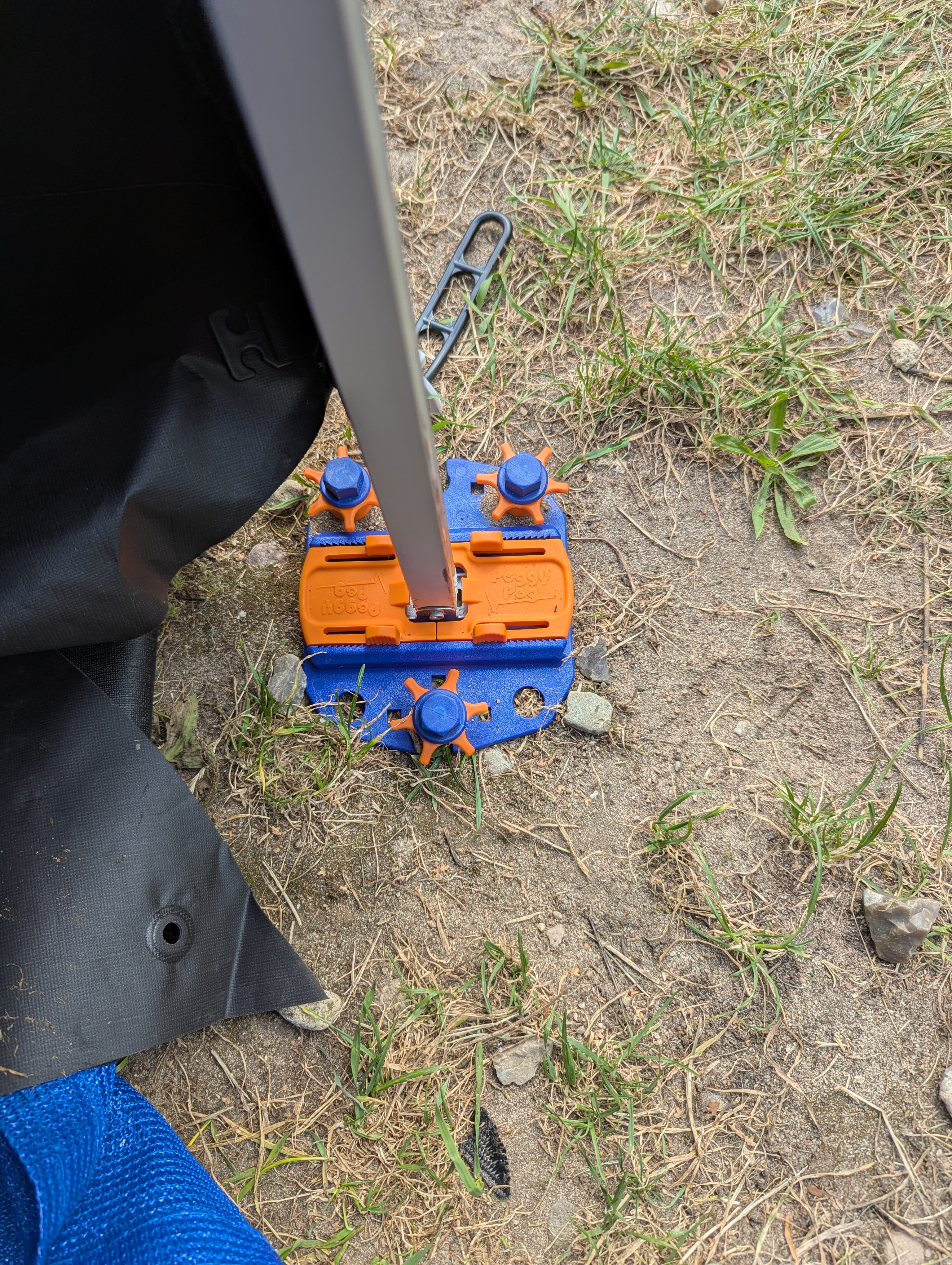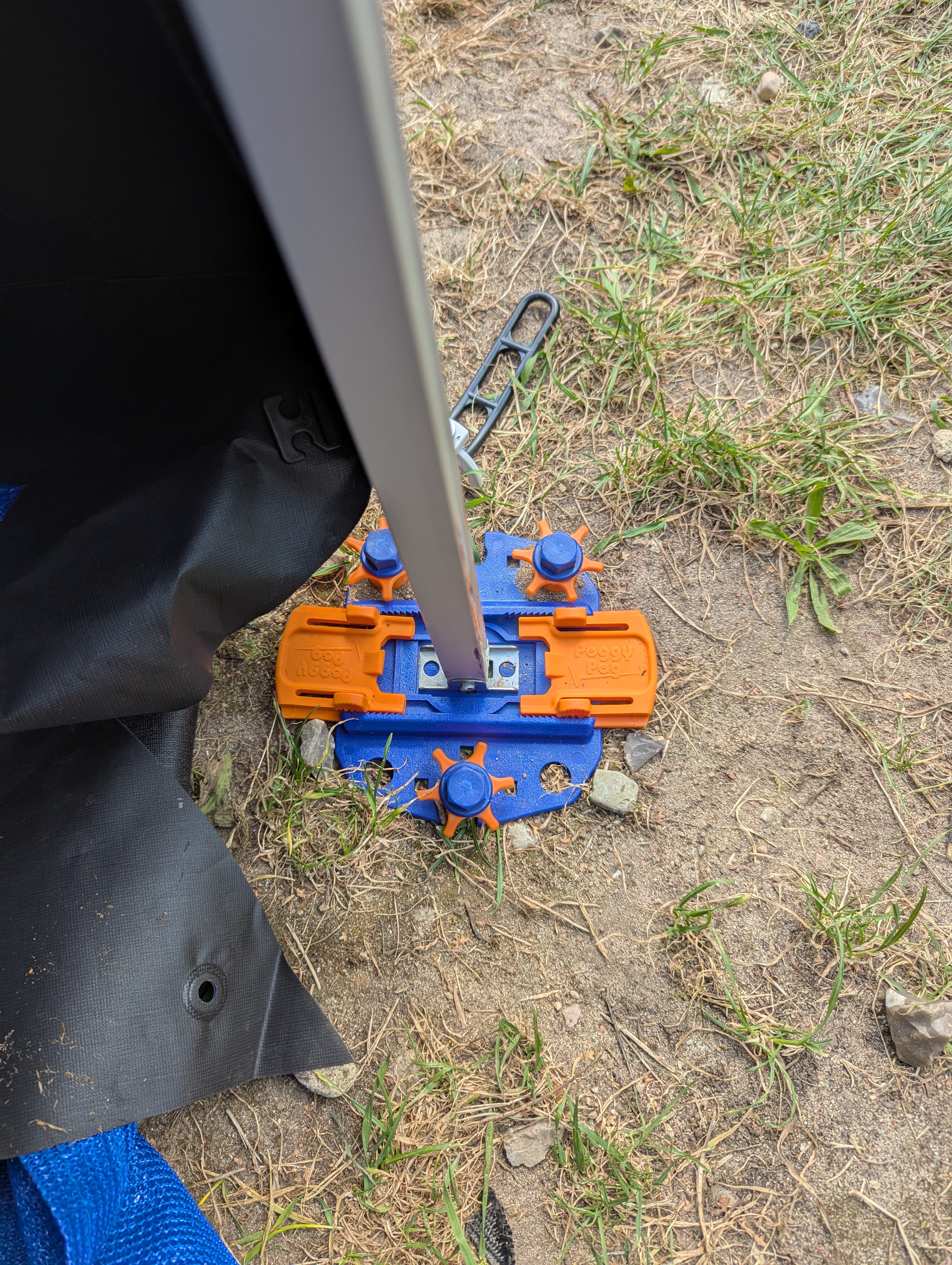 Jeśli nie można wkręcić śledzi do końca w ziemię, można użyć pomarańczowych nakrętek, aby zabezpieczyć płytkę mocującą. Jeśli podłoże jest zbyt twarde, to w zestawie znajduje się poręczne wiertło, za pomocą którego można wstępnie nawiercić otwory. Do zestawu dołączona jest torba do przechowywania.