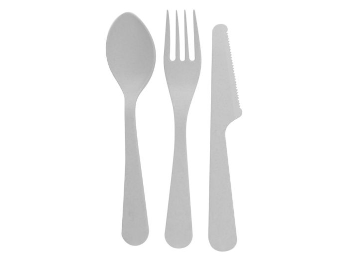 Zestaw sztućców Point-Virgule PLA to ekologiczny 3-częściowy - Light Grey zestaw wykonany w 100% z naturalnych materiałów.