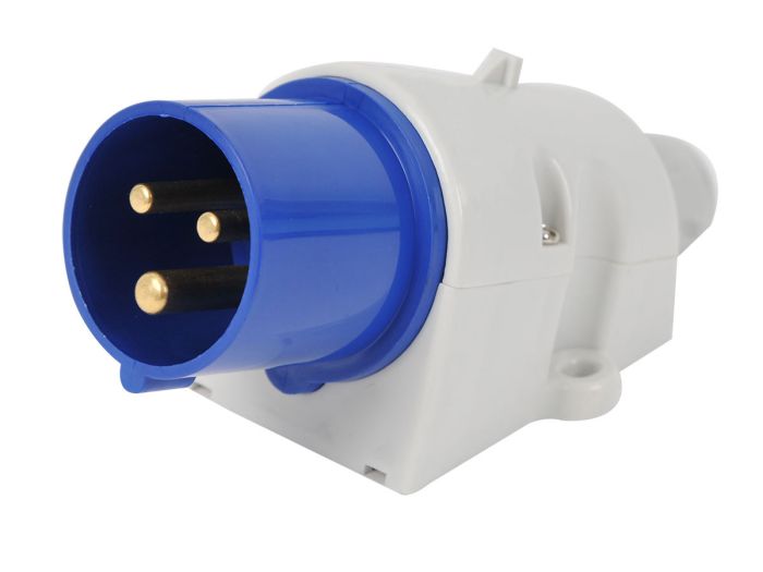 Wtyczka wykonana jest z tworzywa sztucznego i ma kolor niebiesko-biały. Prąd wynosi 16 A, a napięcie 230 V. Posiada 3 bieguny i stopień ochrony IP44.