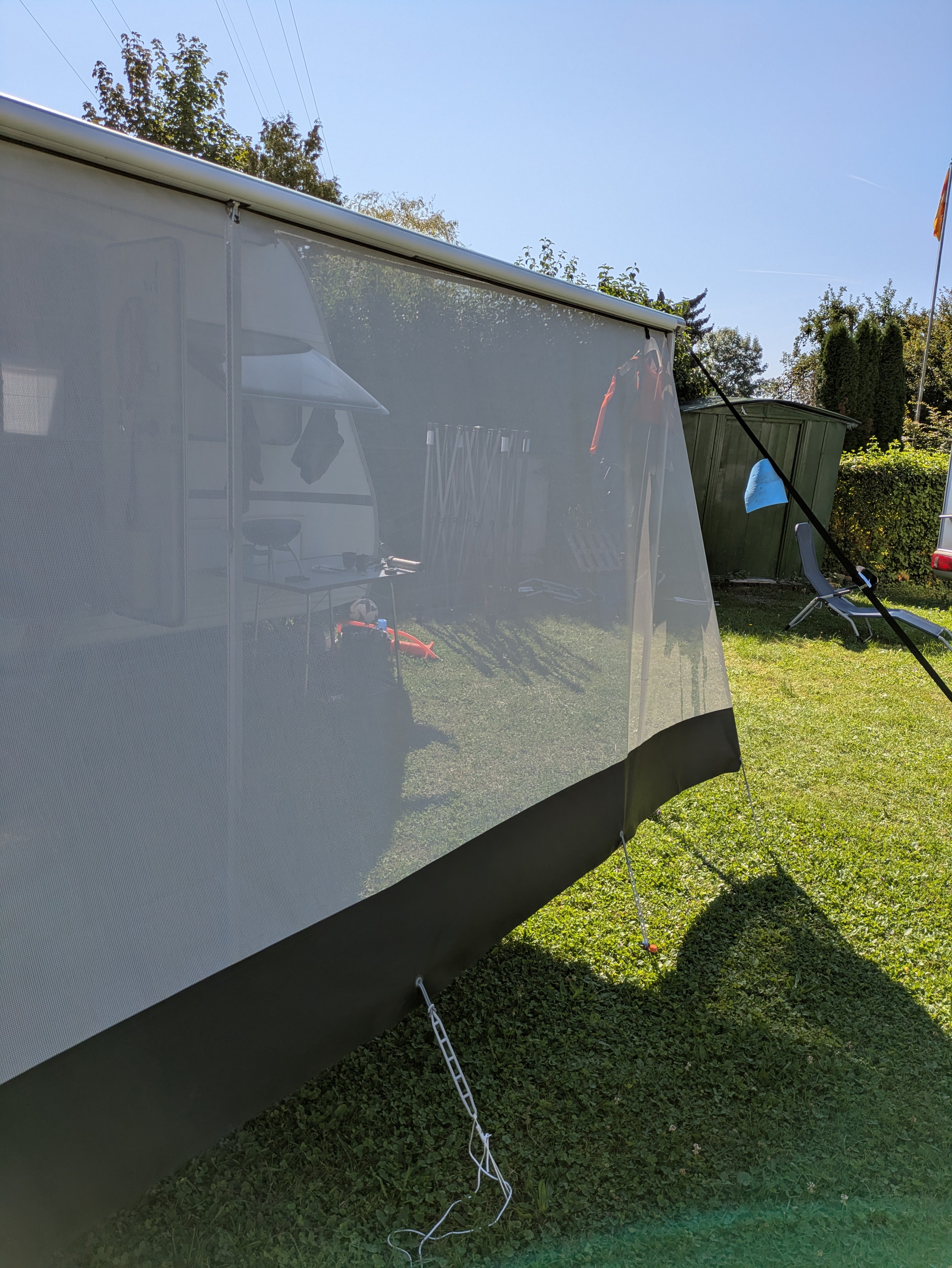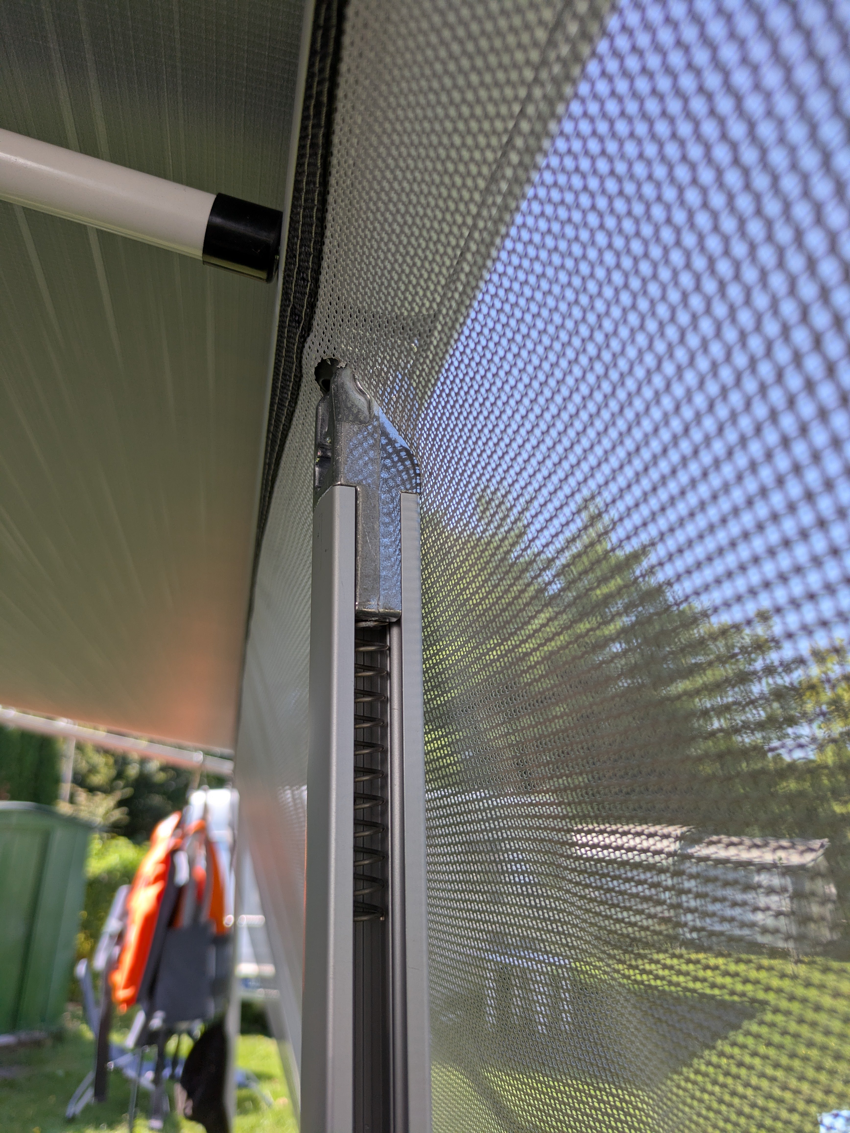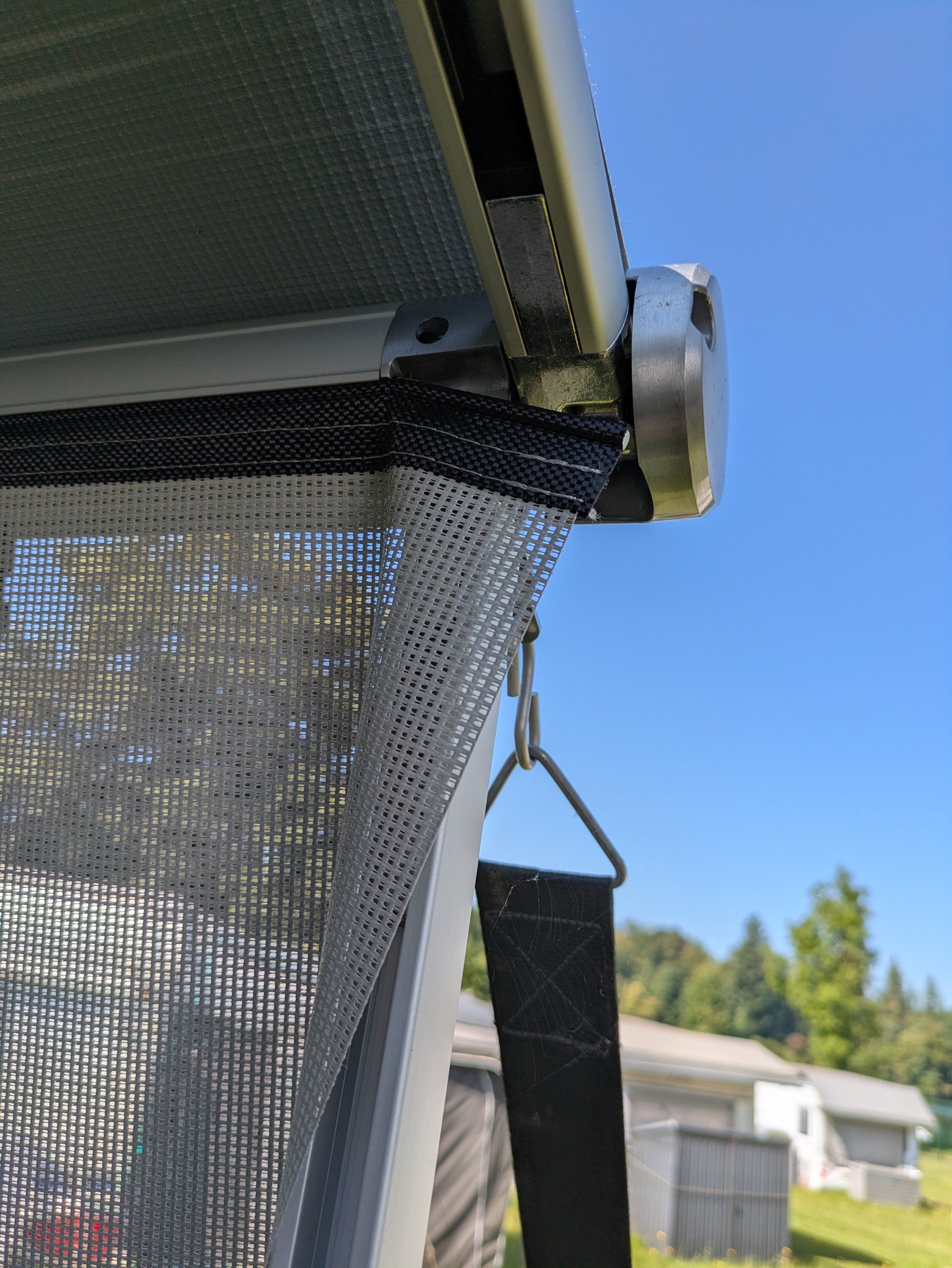 Tę przezroczystą tkaninę ekranową można łatwo i szybko zamocować wsuwając kedrę tkaniny w przedni profil markizy. Sun Blocker przepuszcza światło i powietrze, ale w dużej mierze blokuje światło słoneczne i ciepło. W ten sposób można wygodnie i w cieniu cieszyć się widokami na zewnątrz.